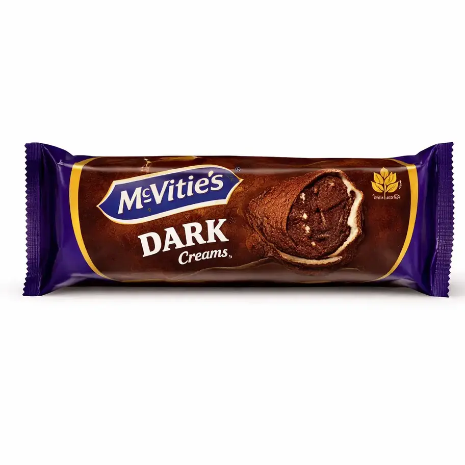 Vanilla Cream Biscuits crunchy dark cookies with smooth vanilla cream filling.